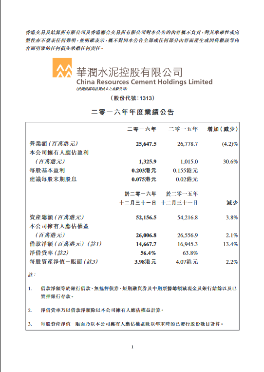 2016年年度業績報告