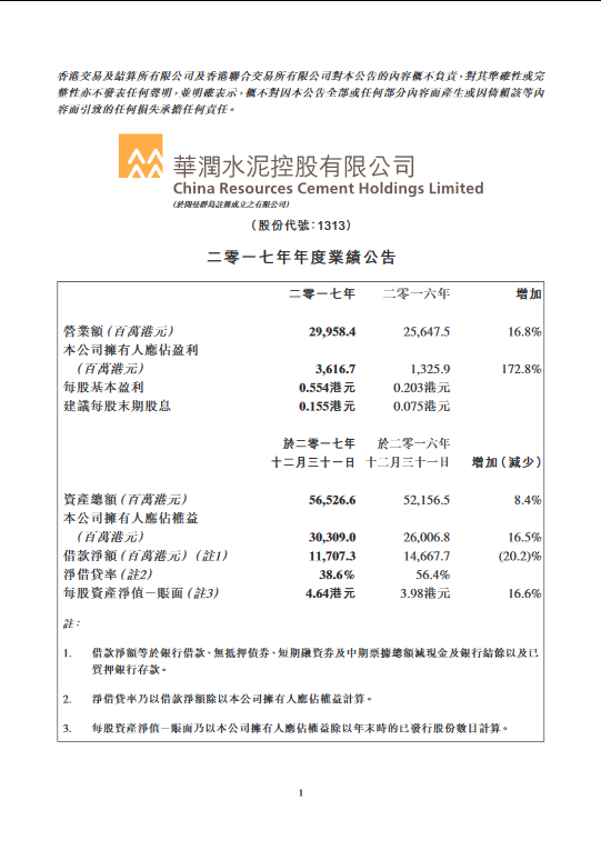 2017年年度業績報告